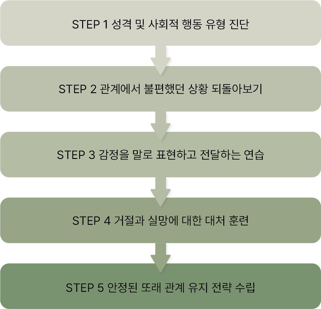 “친구들과 어울리는 게 힘들고,소외되는 느낌이 드나요?”관계 속 감정 이해와 표현 훈련을 통해또래관계의 불안을 완화하고 안정감을 찾아갑니다.